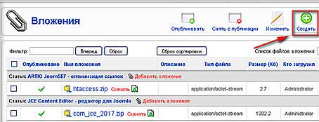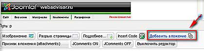 Добавить вложения можно двумя способами: добавление вложения непосредственно в статью и добавление вложения с помощью меню компонента.