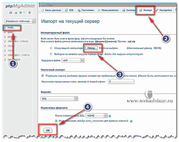 Импорт баз данных mysql phpmyadmin